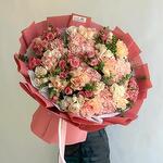 Красивый, пышный букет. Видно что свежий. Но, я просила положить пустую открытку чтобы самой подписать - но не положили. А так, все ок