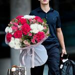 Утончённая композиция из вывернутых и кустовых роз, хризантем и альстромерии. Аккуратная форма и нежная цветовая палитра делают букет идеальным выбором для признаний, поздравлений и особых моментов.
