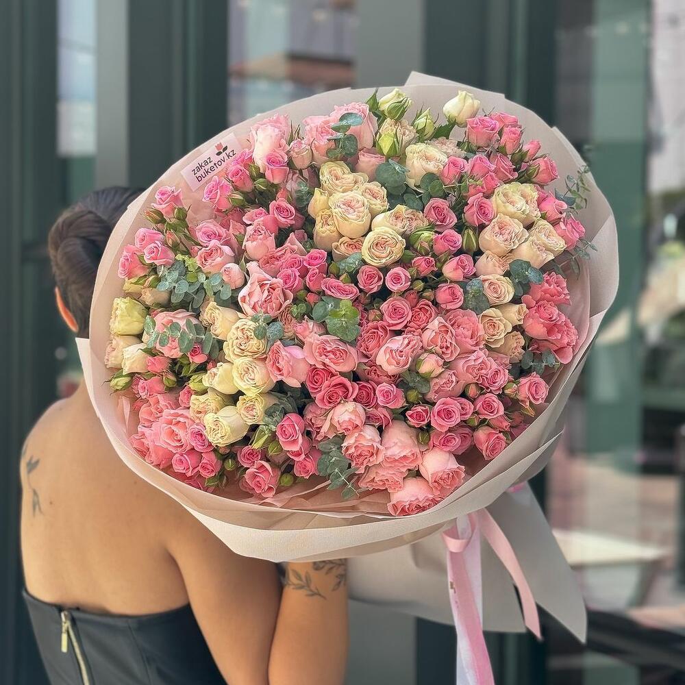 Красивый, пышный букет. Видно что свежий. Но, я просила положить пустую открытку чтобы самой подписать - но не положили. А так, все ок