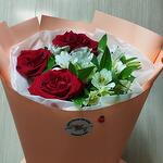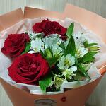 Роза фридом 60 см - 3 шт. альстромерия белая - 4 шт.