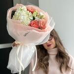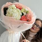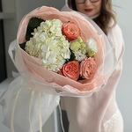 Гортензия - 1 шт. Эустома - 1 шт. Роза пионовидная - 3 шт. Упаковка дизайнерская - 1 шт.