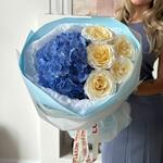 Букет из голландской гортензии и ароматных пионовидных - это не просто цветы, а особое настроение, упакованное в красивую композицию