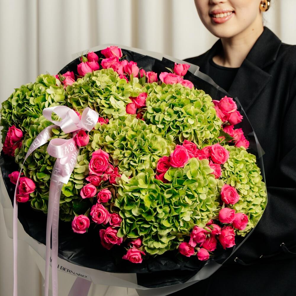 Гортензия - 7 шт. Кустовая роза - 18 шт.