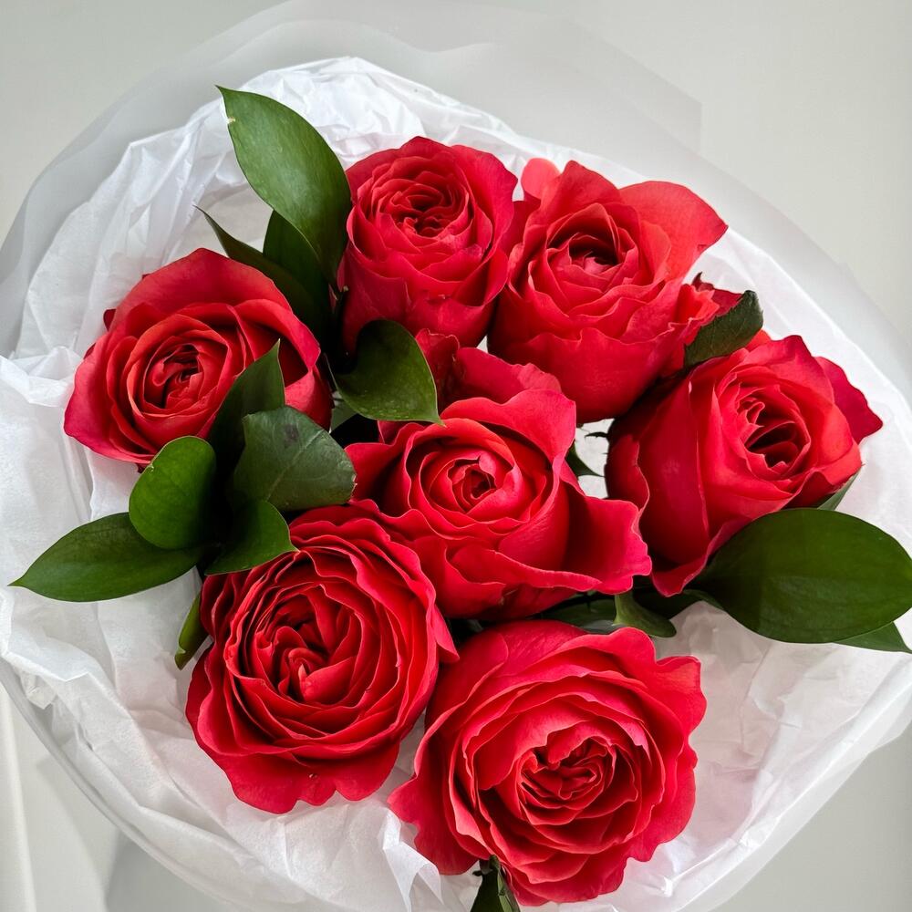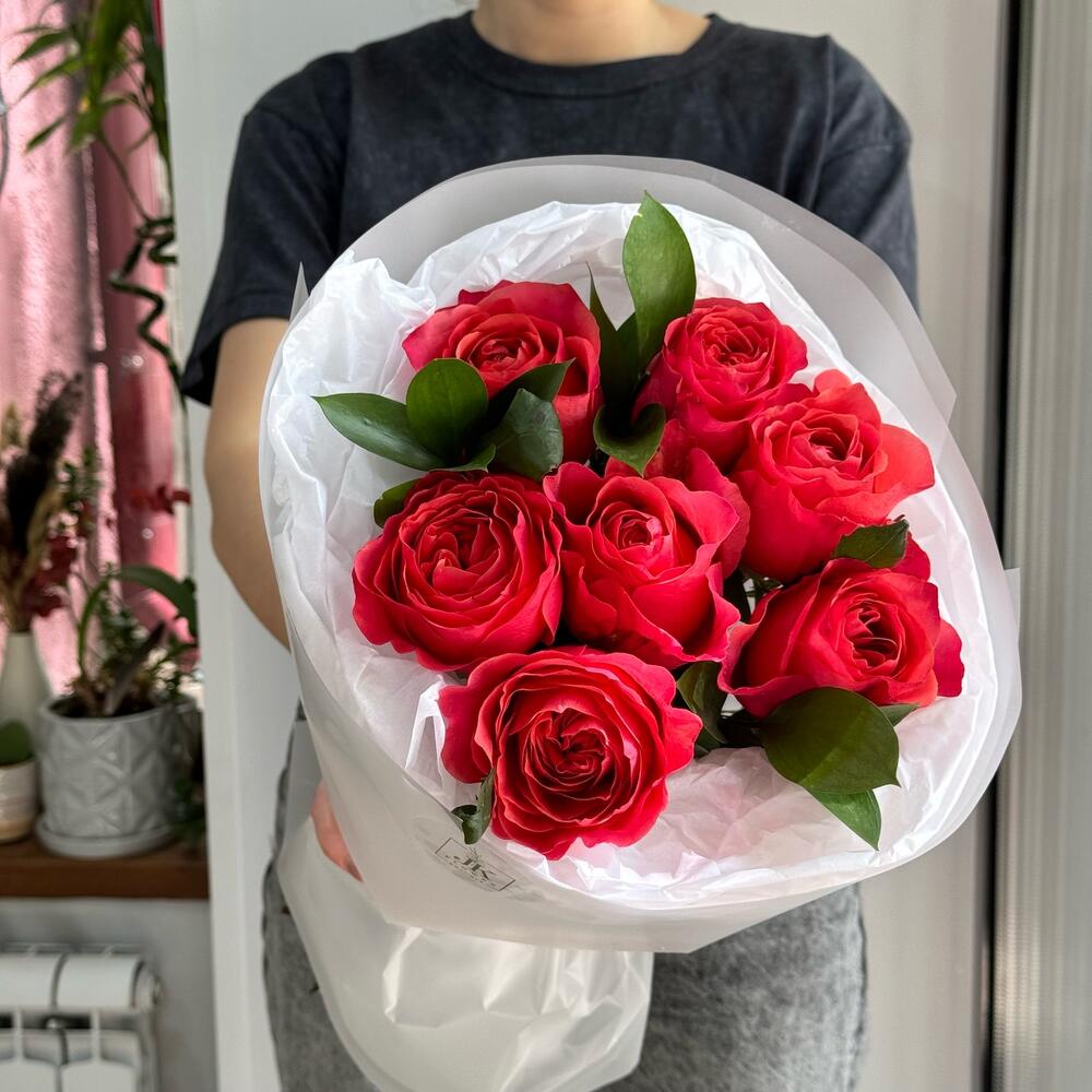 Рускус - 3 шт. пионовидная роза red xpression - 7 шт.