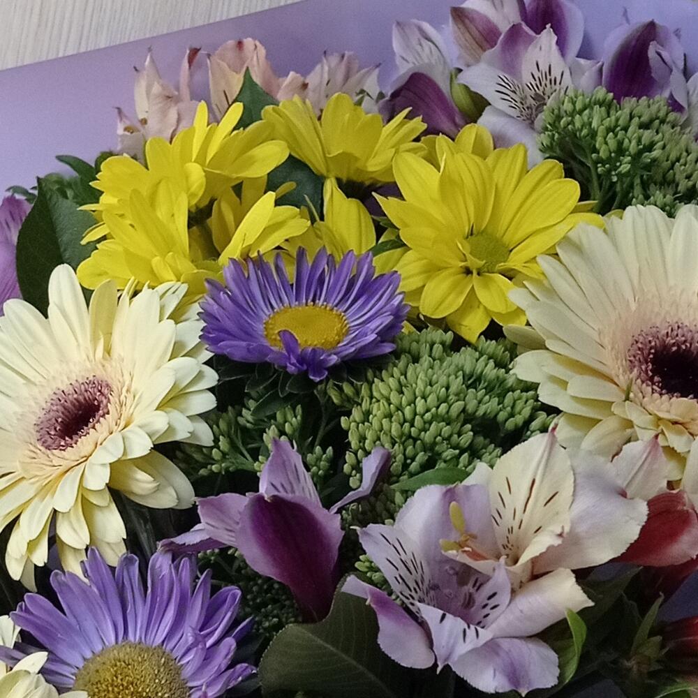 Флорист связалась сразу во время составления композиции, букет свежий и яркий! Доставка во время. Спасибо большое