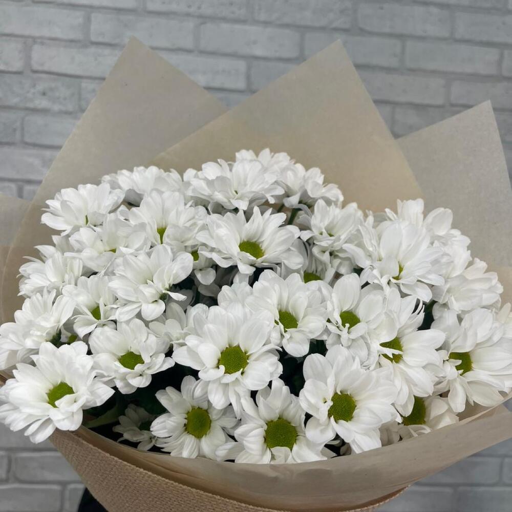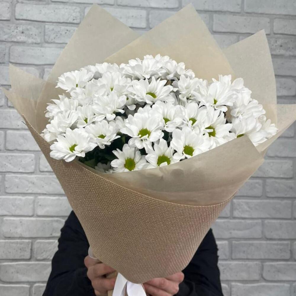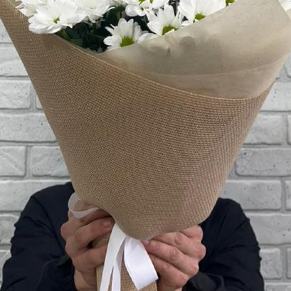 Кустовая хризантема - 5 шт. Оформление - 3 шт. бант атласный - 1 шт.