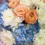Гортензия - 3 шт. Хризантема кустовая - 4 шт. Роза пионовидная - 5 шт.