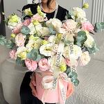 Благодарность магазину! Собрали красивый, соответствующий заявленному внешнему виду букет! Учли пожелания по открытке)