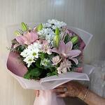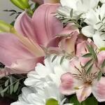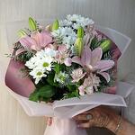 Лилия Розовая - 2 шт. Хризантема кустовая ромашковая - 3 шт. альстромериямикс европа - 4 шт.