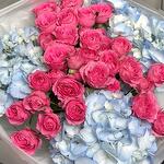 Гортензия - 3 шт. Кустовая роза - 5 шт. Упаковка дизайнерская - 3 шт.
