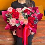 Лизиантус - 1 шт. Роза кустовая - 2 шт. Роза - 7 шт. Эвкалипт Микс - 2 шт. джульетта роза пионовидная - 1 шт.