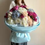 Букет из гортензий, кустовых пионовидных роз, диантусов и хризантем символизирует заботу и внимание. Отличный выбор, чтобы удивить и порадовать близкого человека