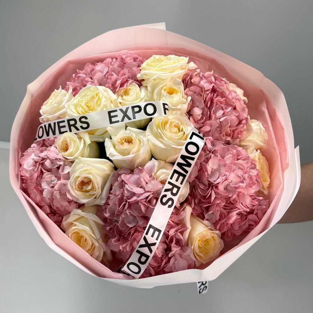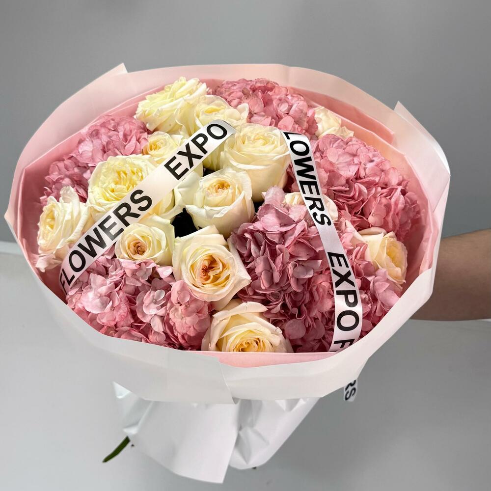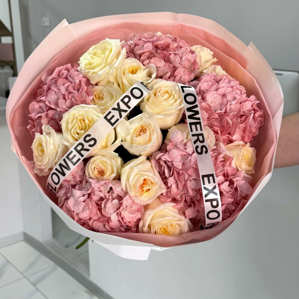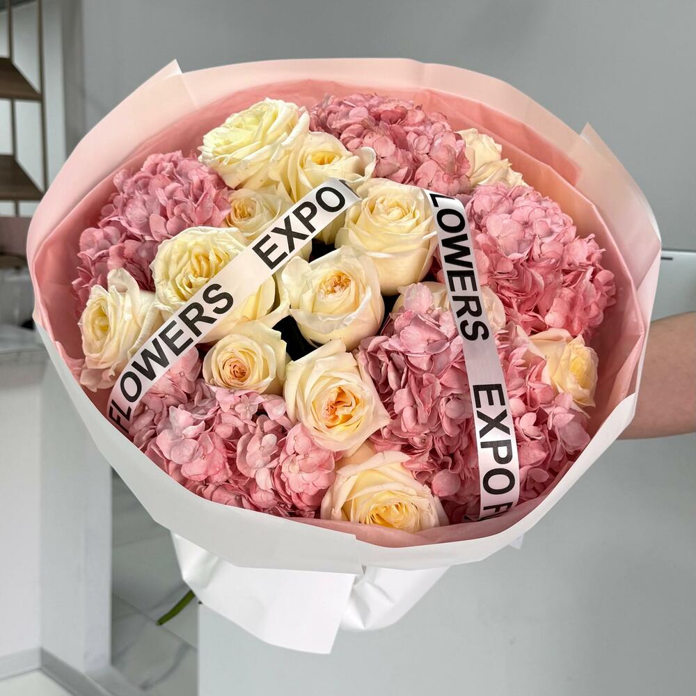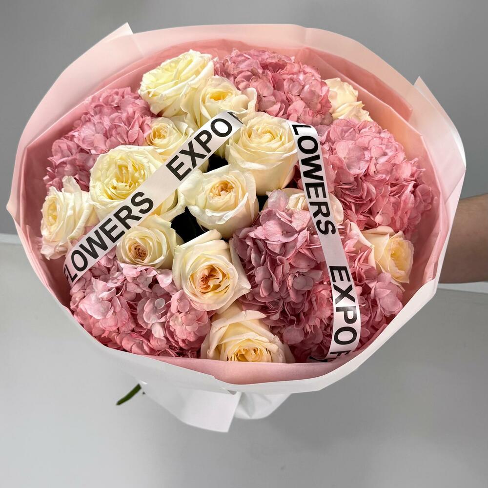 Нежность, воплощённая в цветах 💕 Комбинация роз и гортензий в пудровых оттенках создаёт ощущение лёгкости и утончённости. Такой букет подойдёт для самых тёплых моментов — когда хочется сказать “ты особенная”🌷