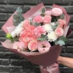 Гортензия - 1 шт. Лизиантус - 3 шт. Хризантема кустовая - 2 шт. Роза - 5 шт. Диантус - 2 шт.