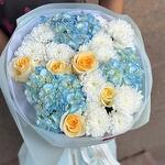 Гортензия - 3 шт. Хризантема кустовая - 3 шт. Роза - 5 шт.