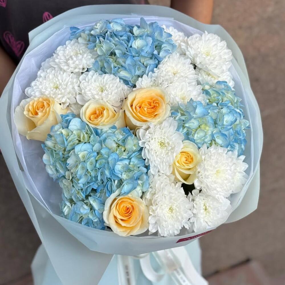 Гортензия - 3 шт. Хризантема кустовая - 3 шт. Роза - 5 шт.