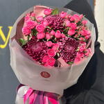 Кустовая роза - 7 шт. Хризантема одноголовая - 3 шт.