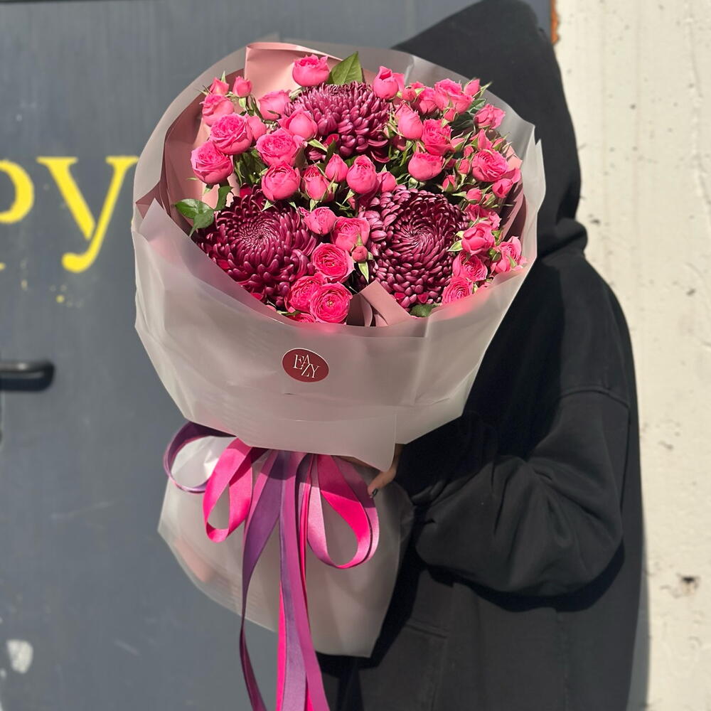 Кустовая роза - 7 шт. Хризантема одноголовая - 3 шт.