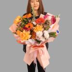 В букете сочетание всех ярких красок осени, такой букет подарит яркие эмоции