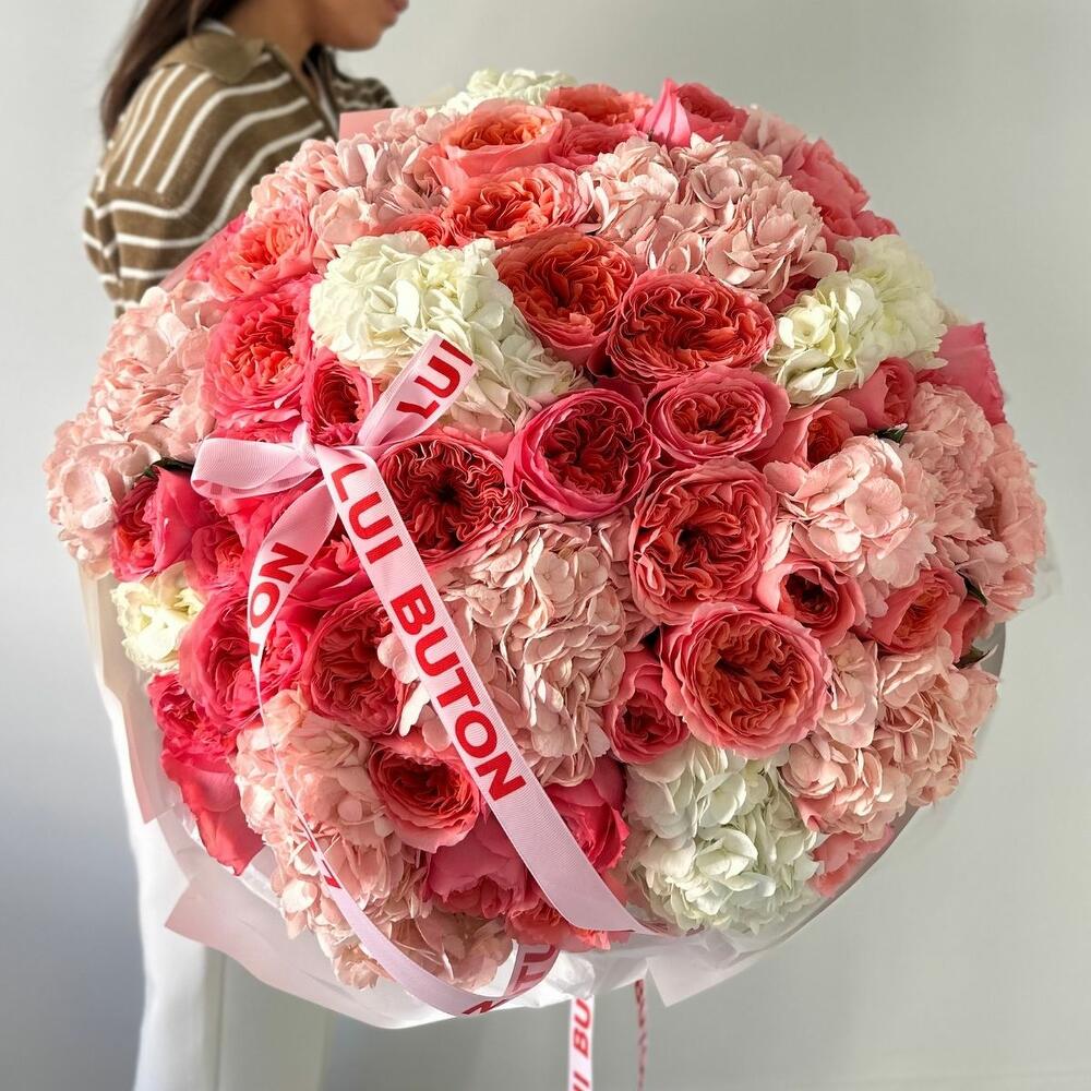 гортензии - 13 шт. пионовидные розы - 51 шт.