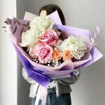 Гипсофила - 1 шт. Гвоздика - 2 шт. Декор - 1 шт. розы - 5 шт.