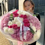 Эвкалипт - 3 шт. Хризантема - 7 шт. гортензии - 3 шт. пионовидные кустовые розы - 3 шт.