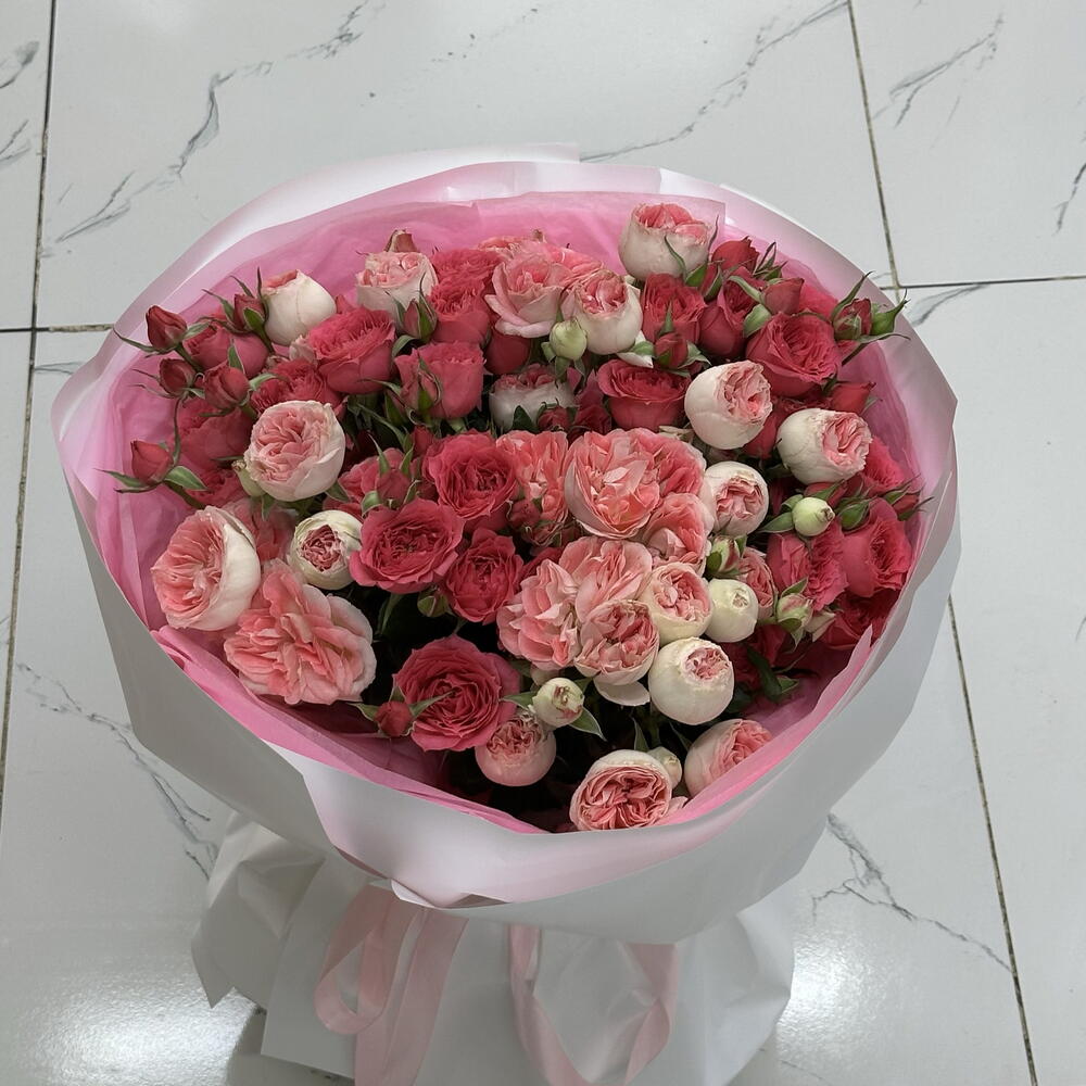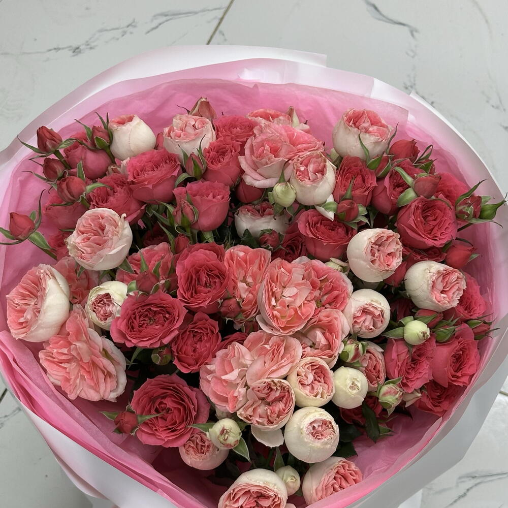 Букет микс из спрей-роз Яркий букет из свежих спрей-роз разных оттенков — нежная и живая композиция с пышным объёмом. Множество миниатюрных бутонов создают лёгкую, выразительную форму и долго сохраняют свежесть. Флористы Million.floral собирают каждый букет вручную перед доставкой, используя только свежие цветы высокого качества. Аккуратная упаковка подчёркивает красоту оттенков и делает букет стильным подарком для любого повода.