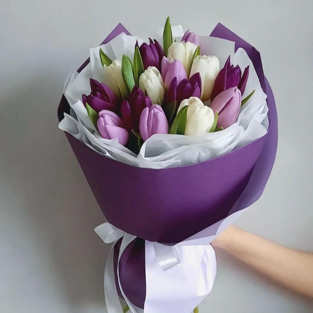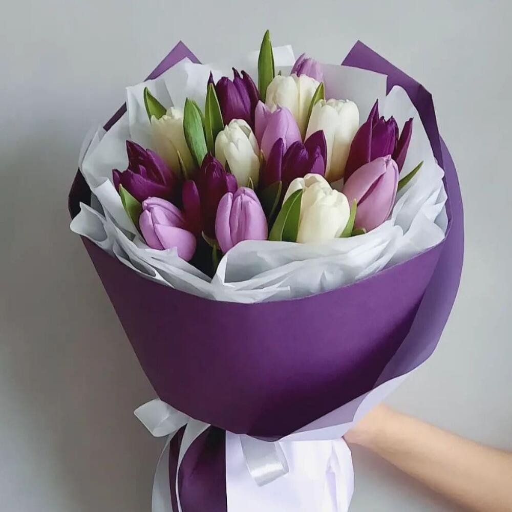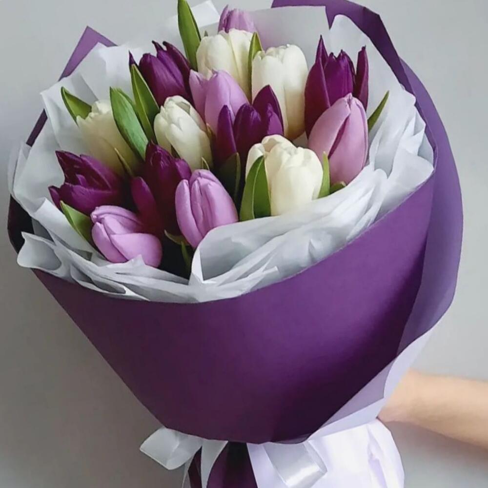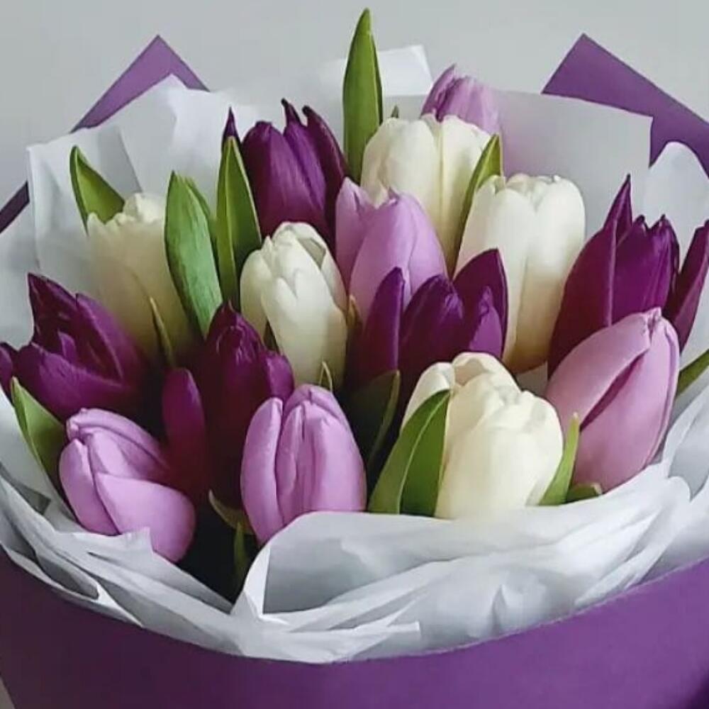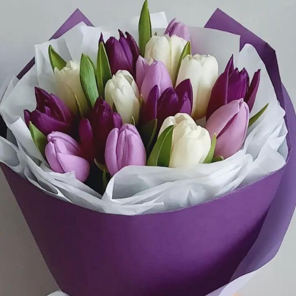 Тюльпан белый - 5 шт. тюльпаны - 15 шт. тюльпан черничный - 5 шт. тюльпан лвандовый - 5 шт.