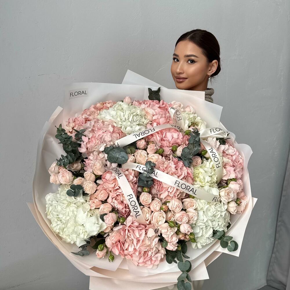 Гортензия - 13 шт. Эвкалипт - 2 шт. Кустовая роза - 17 шт.