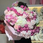 Диантус - 5 шт. гортензии - 7 шт. кустовые пионовидные розы - 7 шт. лилии - 4 шт.