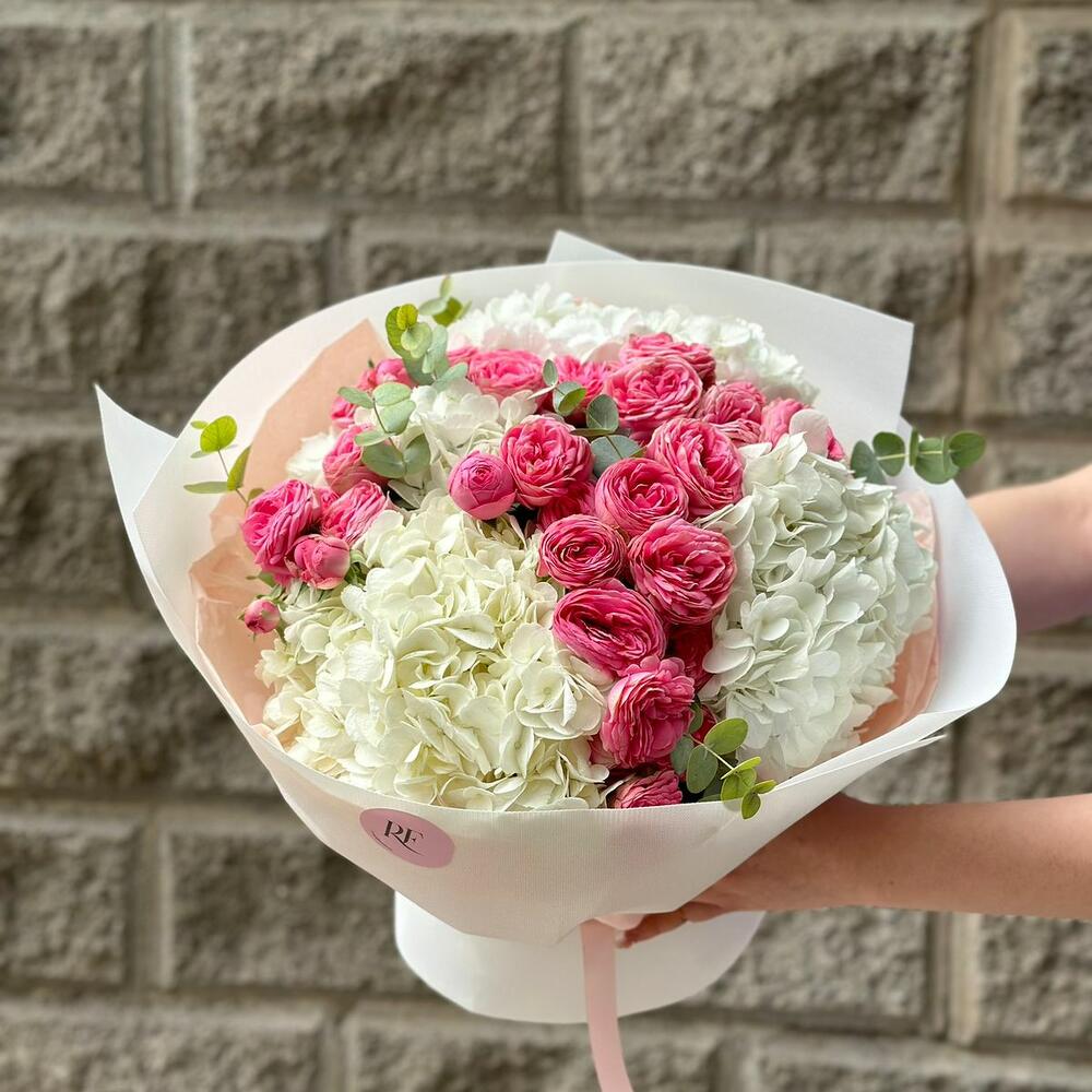 Гортензия - 3 шт. кустовые розы - 5 шт.
