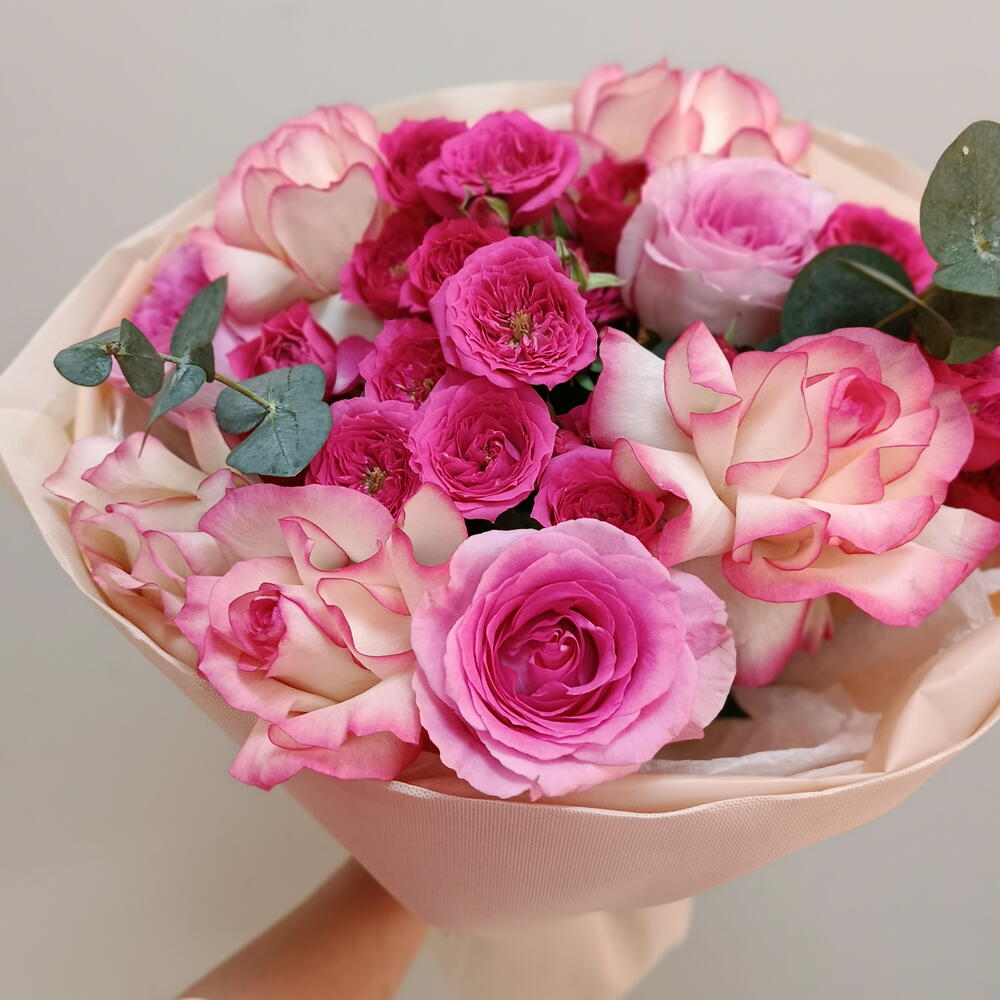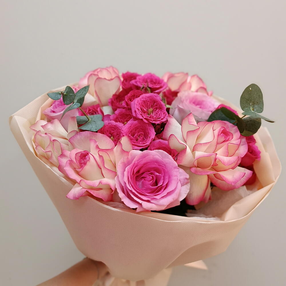 Роза Джумилия - 5 шт. Эвкалипт Цинерея - 2 шт. роза мандала - 3 шт. софия кустовая - 2 шт.