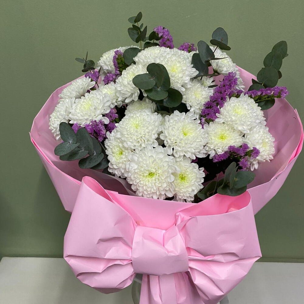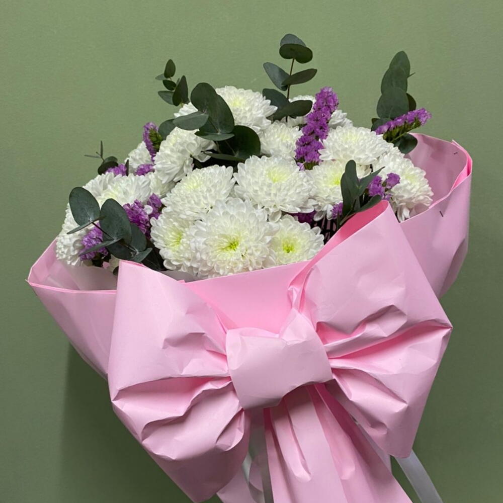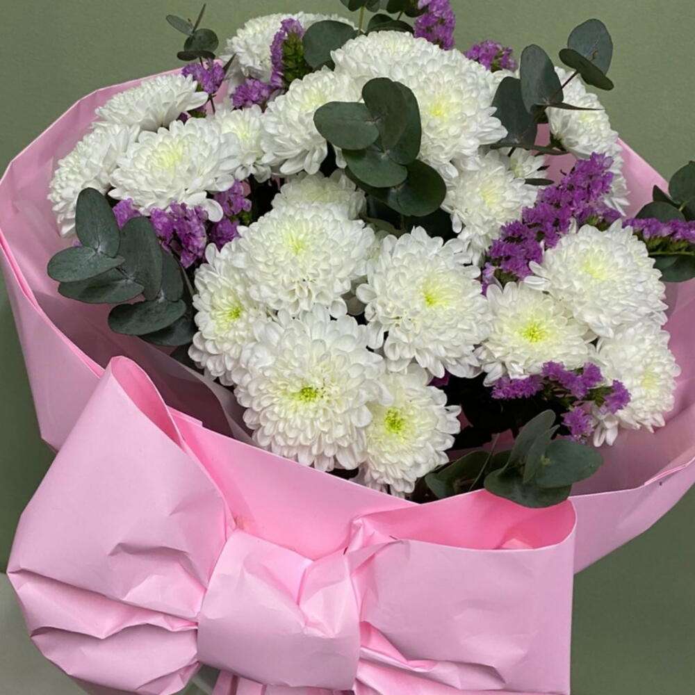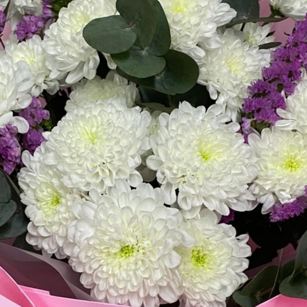 Эвкалипт Цинерея - 3 шт. статица розовая кустовая - 3 шт. хризантемы кустовые алтай - 5 шт.