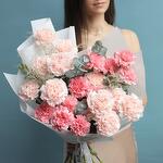 Эвкалипт - 5 шт. Стифа - 3 шт. диантус (гвоздика) - 19 шт.