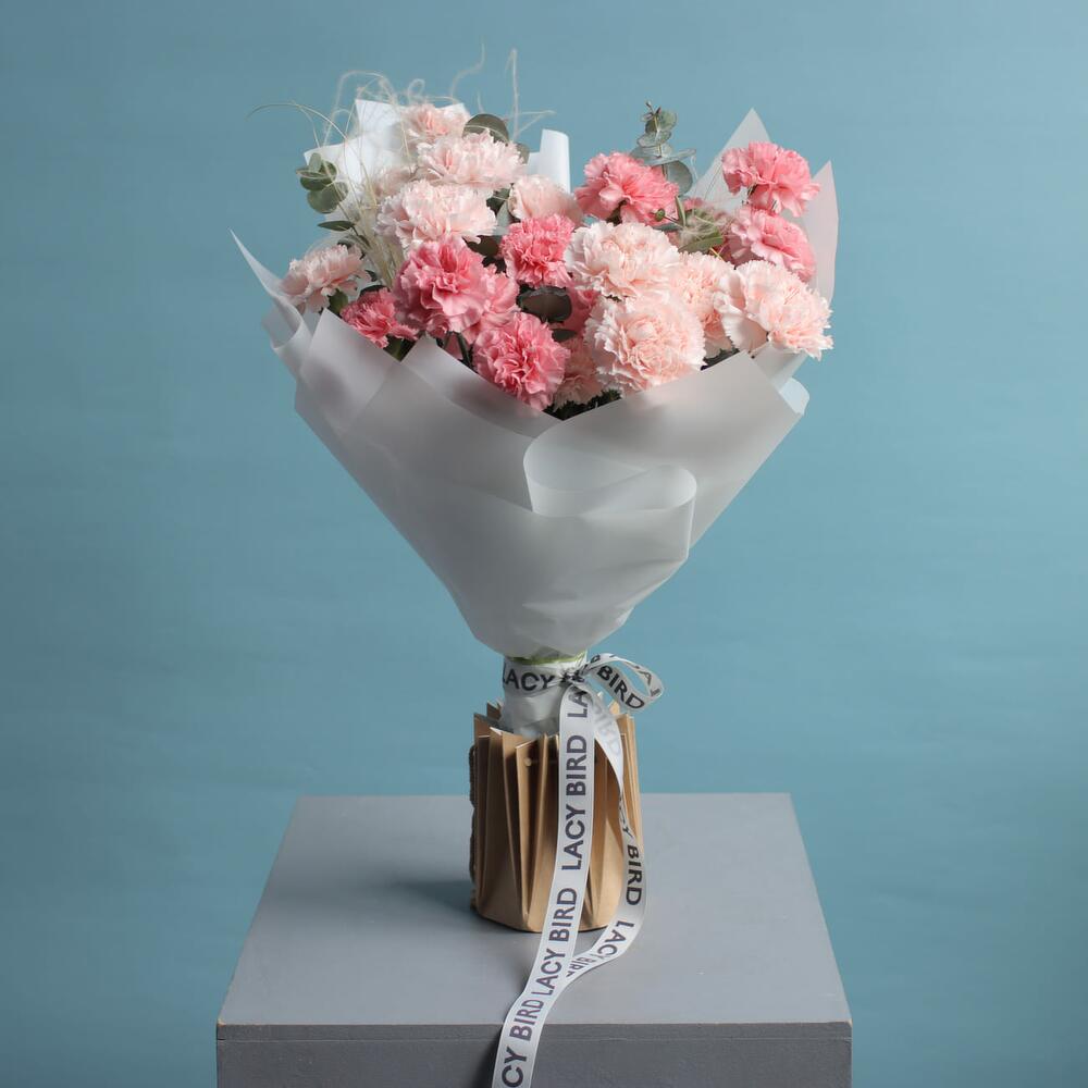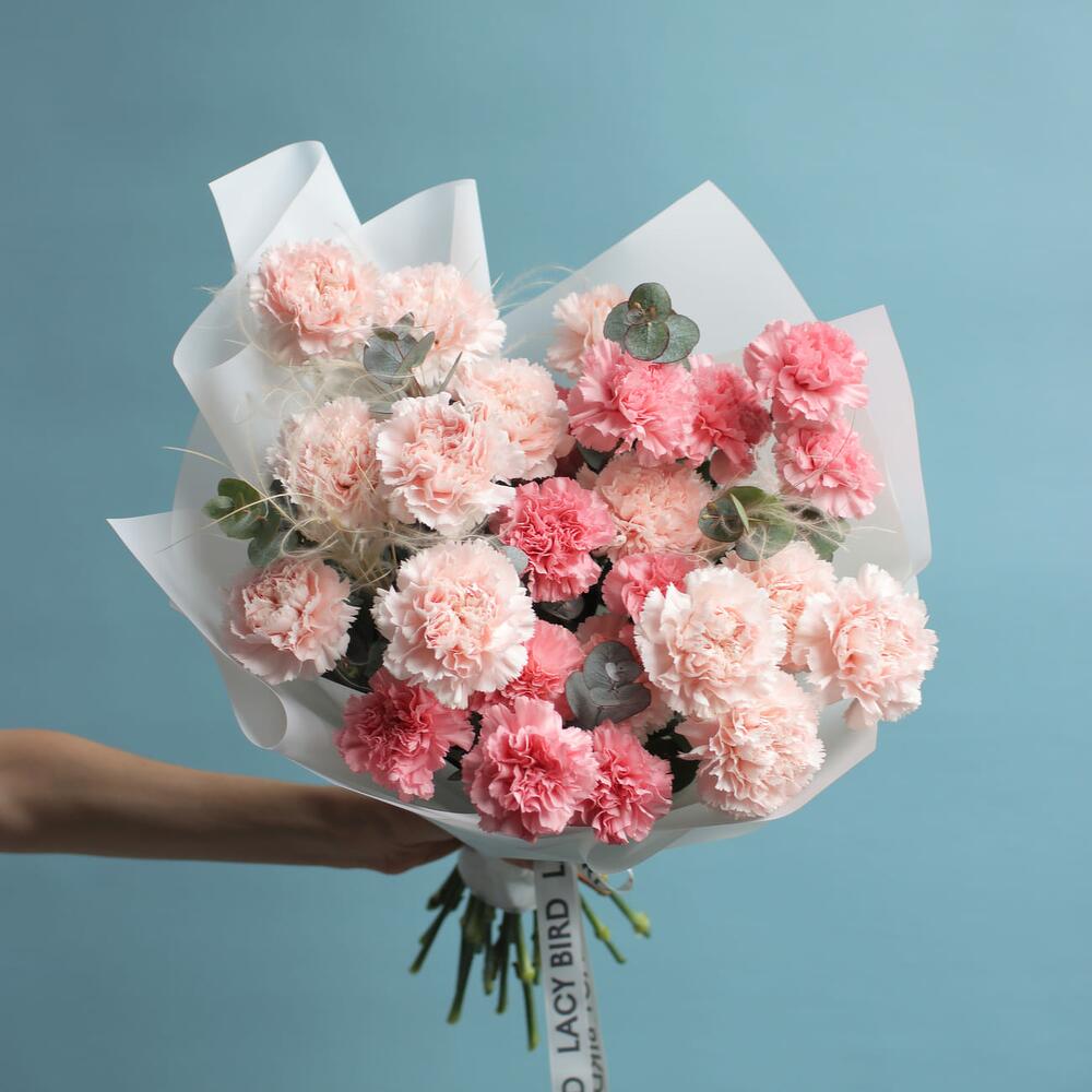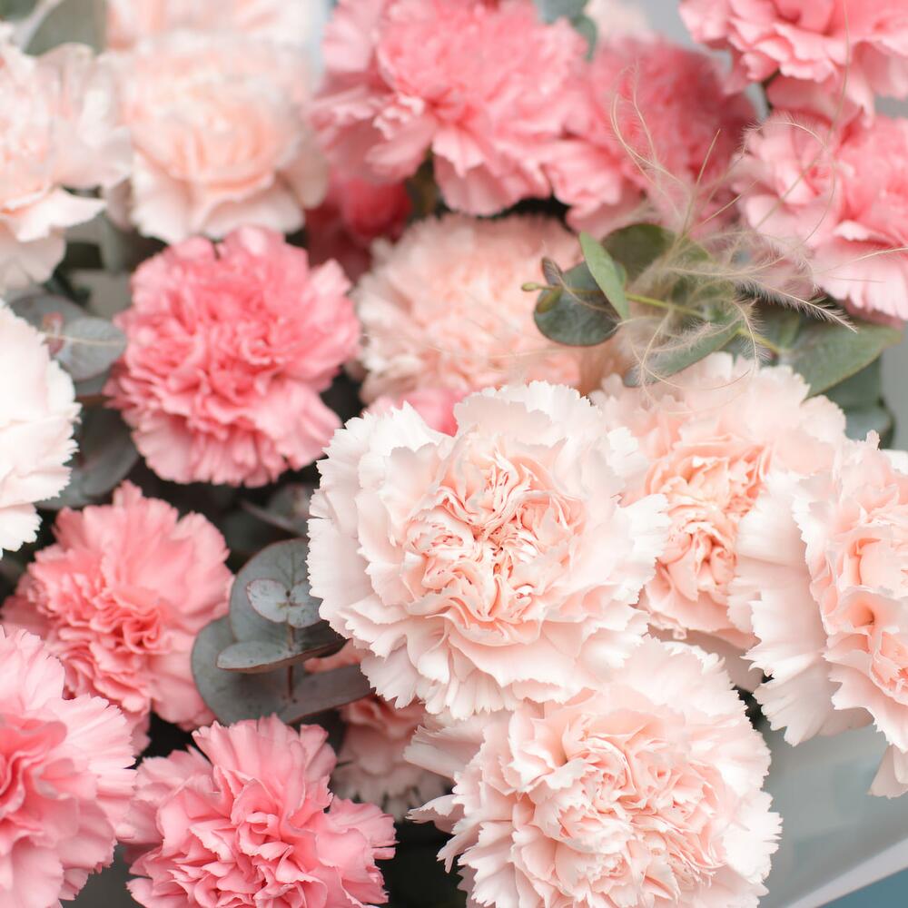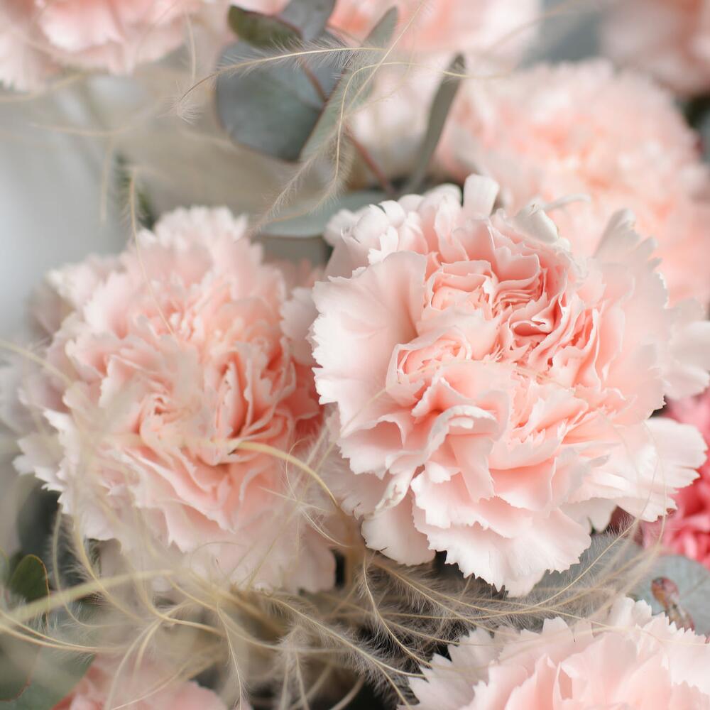 Эвкалипт - 5 шт. Стифа - 3 шт. диантус (гвоздика) - 19 шт.