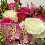 белая роза 60 см - 3 шт. спрей роза "софия" - 3 шт. алстроеиерия розовая - 3 шт.