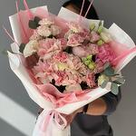 Эвкалипт - 1 шт. Эустома - 5 шт. Диантус - 3 шт. Сухоцветы - 6 шт. французские розы - 5 шт.