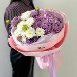 Гортензия - 1 шт. хризантемы - 3 шт. эустомы - 3 шт.
