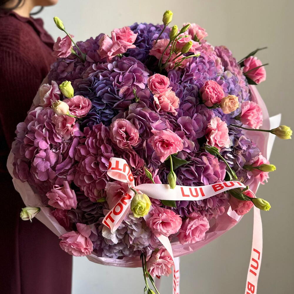 Королевская гортензия придаёт этому букету особый шарм и благородство. Он выглядит утончённо, свежо и очень эффектно вживую