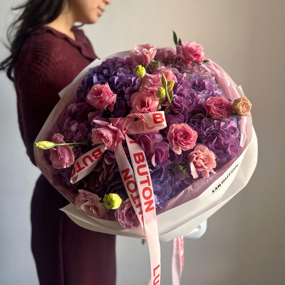 Нежный, но впечатляющий букет, в котором королевская гортензия раскрывается во всей своей красоте