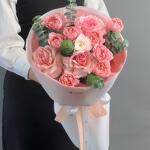 Этот утончённый букет объединяет в себе гармонию природы и элегантности. Ароматный эвкалипт придаёт свежесть и лёгкость композиции, нежный ранункулюс создаёт мягкий акцент, а пионовидные розы в тандеме с изысканными Джульеттами воплощают романтику и изящество. Такой букет станет идеальным подарком для выражения самых искренних чувств, будь то признание в любви или благодарность. Подарите момент незабываемой радости с этим шедевром флористики!