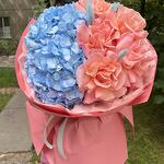 Гортензия - 2 шт. Роза - 5 шт. Лагурус (сухоцвет) - 5 шт.