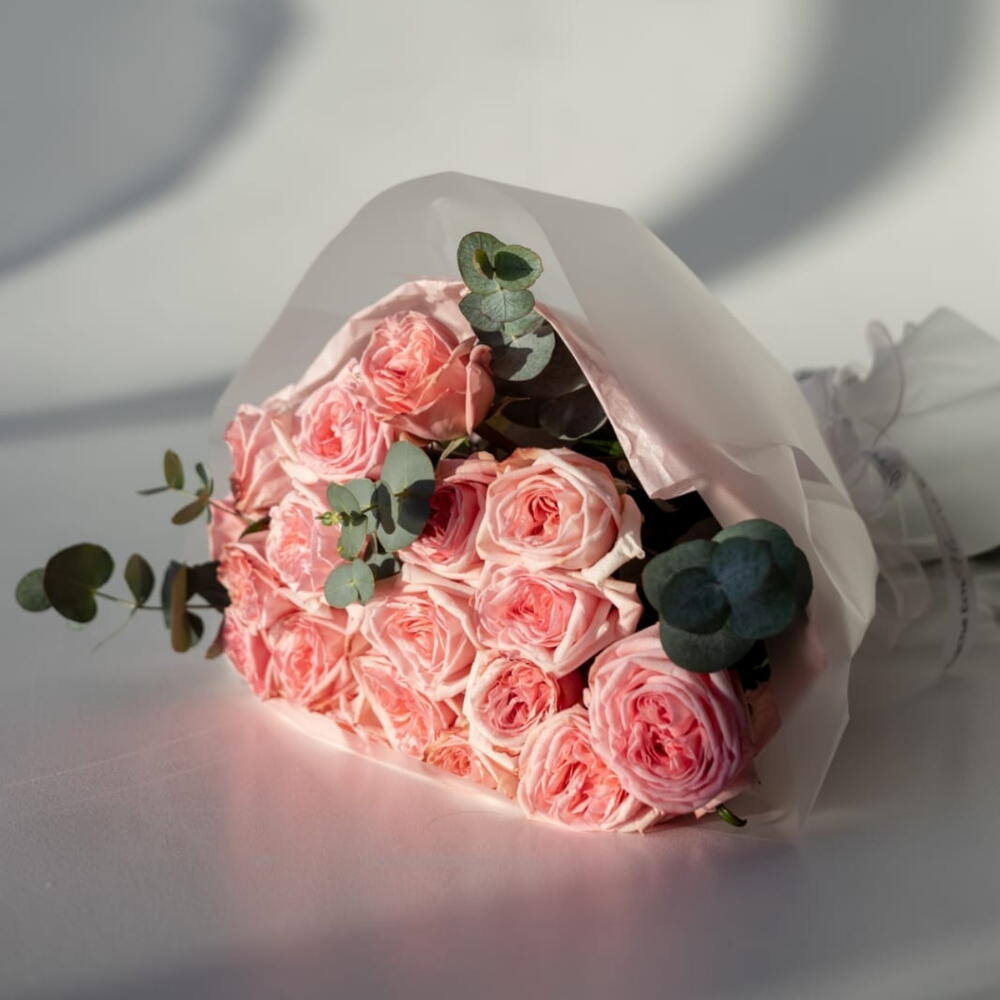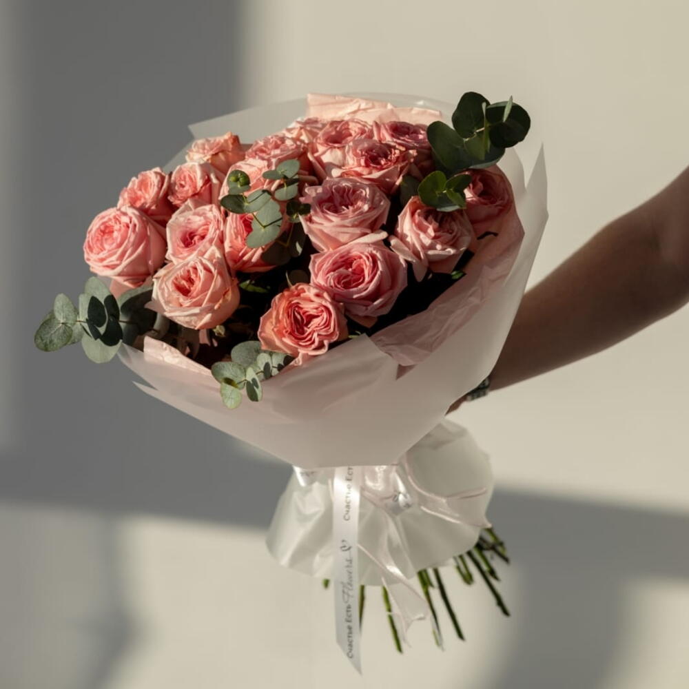 Эвкалипт Baby Blue - 2 шт. роза Pink O'Hara(ароматная) - 17 шт.