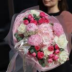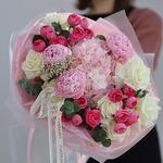 Гортензия - 1 шт. Пион - 3 шт. Эвкалипт - 5 шт. Роза - 7 шт. жизель кустовая - 4 шт.