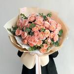 Открытка - 1 шт. эвкалипт (голландия) - 1 шт. спрей роза пионовидная (кения) - 21 шт. калька в ассортименте - 4 шт.