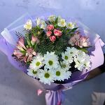 Альстромерия - 5 шт. Роза кустовая - 1 шт. Хризантема кустовая - 2 шт.