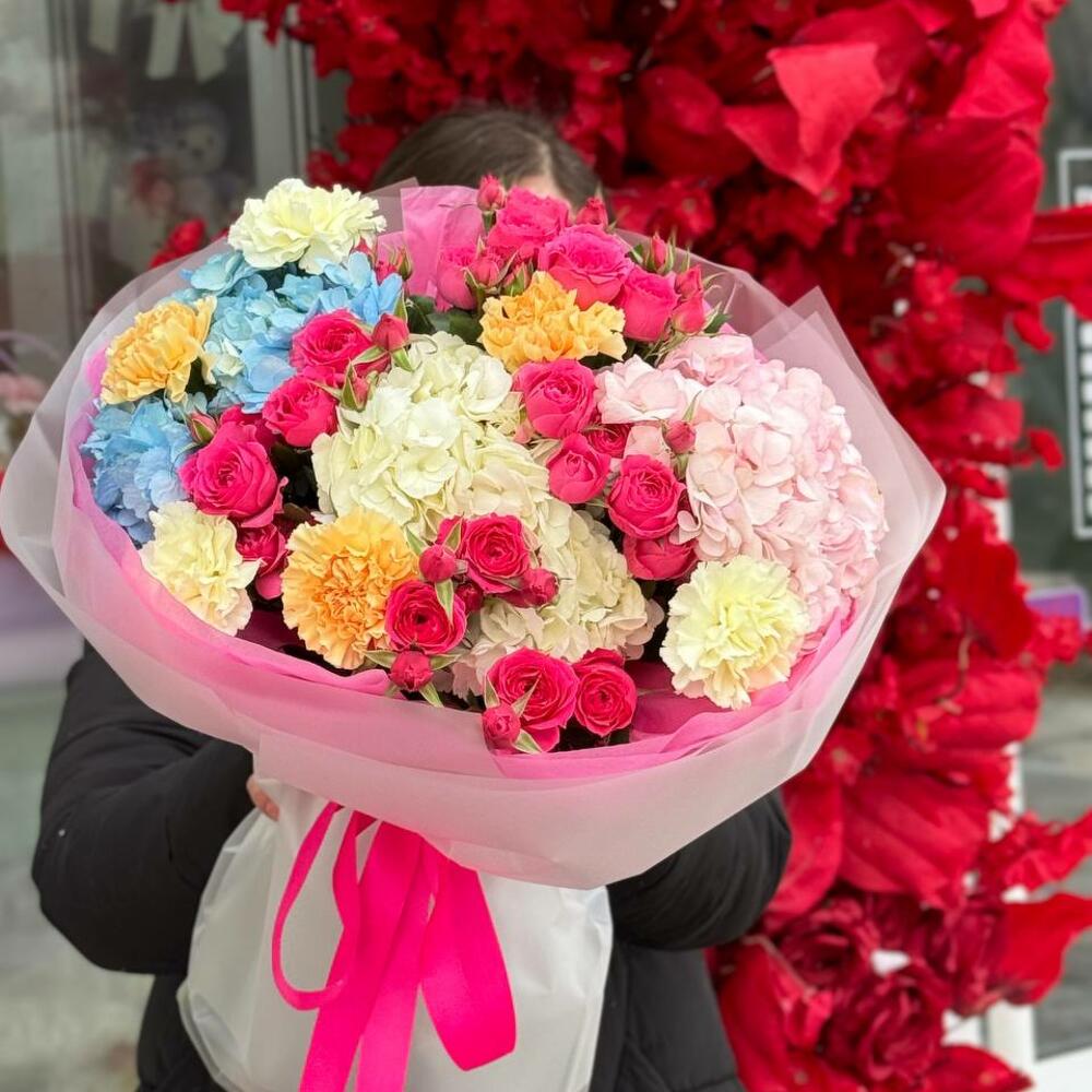 Гортензия - 3 шт. Кустовая роза - 4 шт. Диантус - 6 шт.