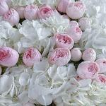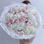 Роза пионовидная - 9 шт. Дизайнерская упаковка - 1 шт. гортензия гидрангея - 15 шт.