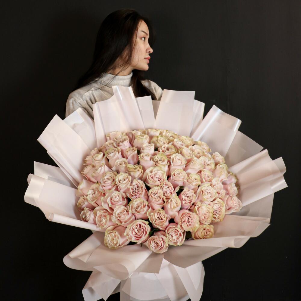 Букет из 101 розовой розы - Высота 50 - 60 см. - Фирменное оформление. - Фирменный шоколад в подарок!