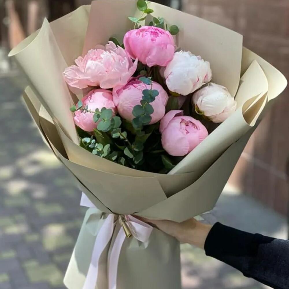 Эвкалипт - 1 шт. пионы - 7 шт.